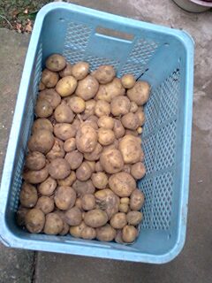 草刈の途中で、ジャガイモ堀りをしました。「北あかり」が15kgとれました。